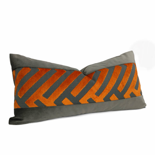 Euclid Orange Gray Chevron Panel Velvet Pillow Cover