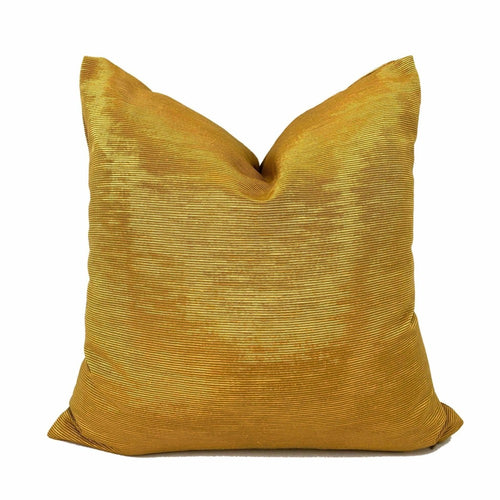 Made from a gorgeous woven fabric from France, this rich 24 karat gold colored pillow cover features a subtle watermark like abstract pattern characteristic of moire fabrics. A special manufacturering process causes light to diffract differently on different areas of the fabric to create the wavy moire design.