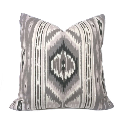 | This pillow cover is made from a Nate Berkus designer ethnic fabric print in gray with light lilac pink accents. Pattern fabric is used on both sides and the pattern will be placed symmetrically in all sizes. Photographed on 19x19 cover (filled with 20x20 insert). The fabric is a screen printed home decor weight cotton. This pillow cover is hand-crafted from genuine Nate Berkus fabric but it is not a licensed Nate Berkus product. Aloriam is not affiliated with or sponsored by Nate Berkus. |