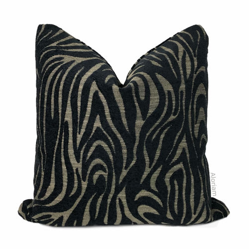 The Saber pillow cover features a striking tiger stripe design woven in black and beige. This timeless animal-inspired pattern and neutral color palette ensures a great fit in both traditional and contemporary home interiors.