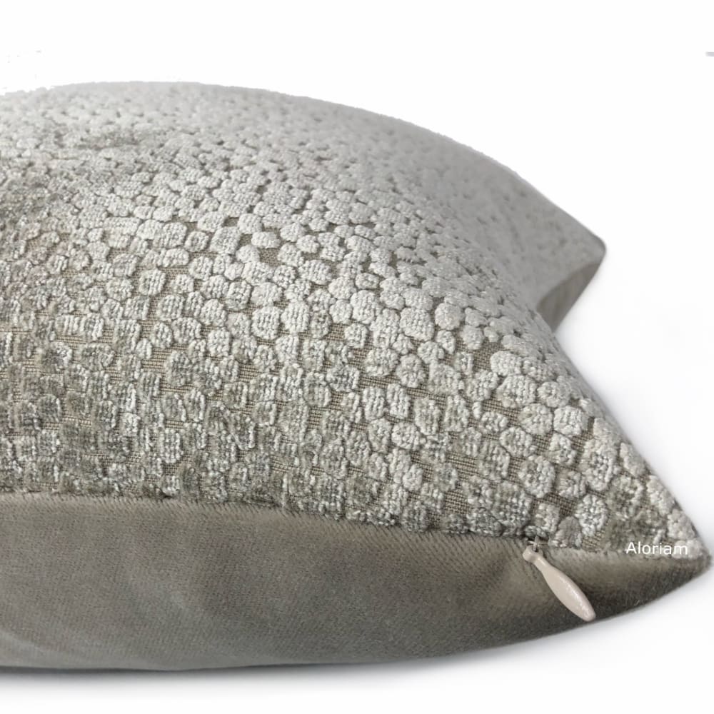 Ascott Taupe Gray Abstract Cut Velvet Dots Pillow Cover (Fabric by the Yard available)