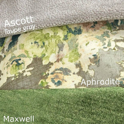 Zoom in on all the pictures to fully appreciate the luster and texture of this luxury fabric! Please note that this fabric is more gray than taupe. To be sure the color works with your decor, you can order a sample here.