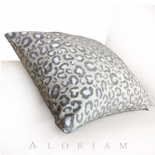 (CLEARANCE) Big Jungle Cat Leopard Cheetah Animal Spots Pattern Gray Cream Pillow Cover