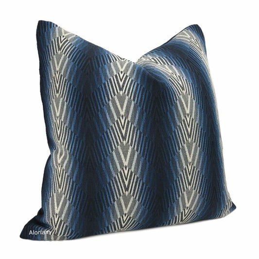 Beekman Blue Art Deco Chevron Stripe Pillow Cover