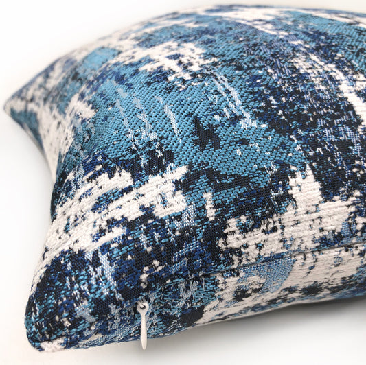 Conti Ocean Blue & White Abstract Woven Texture Pillow Cover
