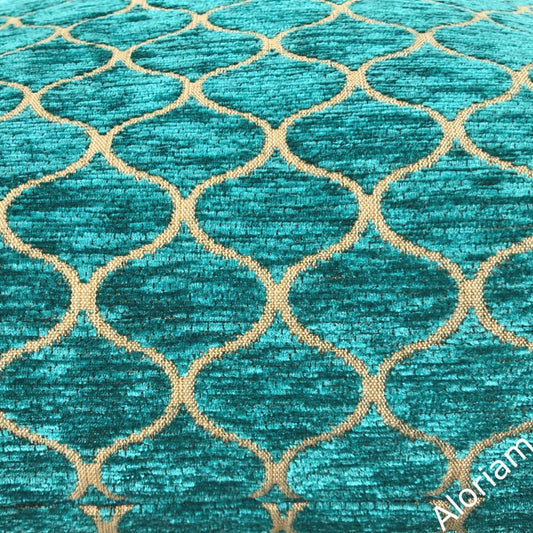 Imani Jewel Teal Green Ogee Lattice Chenille Pillow Cover