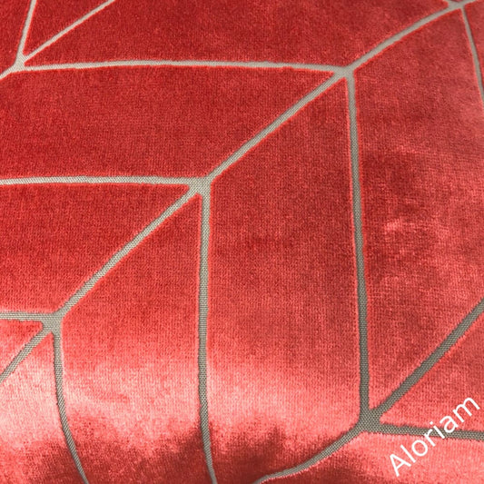 Leyland Coral Red Diagonal Chevron Velvet Pillow Cover