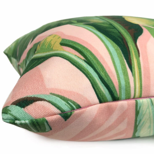 Palmiers Pink Green Palm Leaf Print Indoor Outdoor Pillow Cover (Tommy Bahama fabric)