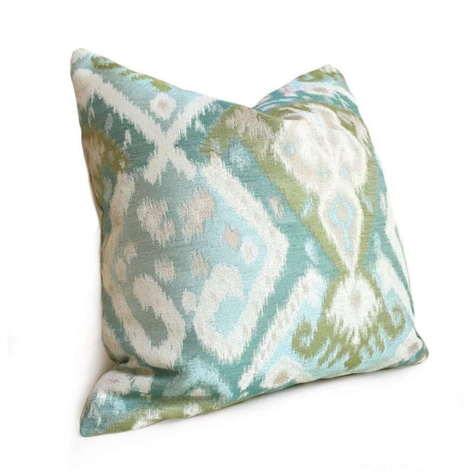Ortega Ikat Southwest Aqua Green Blue Beige Pillow Cover (Kravet fabric)
