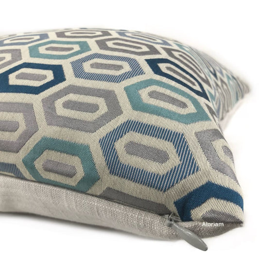 Silver Gray Blue Aqua Hexagon Geometric Pillow Cover