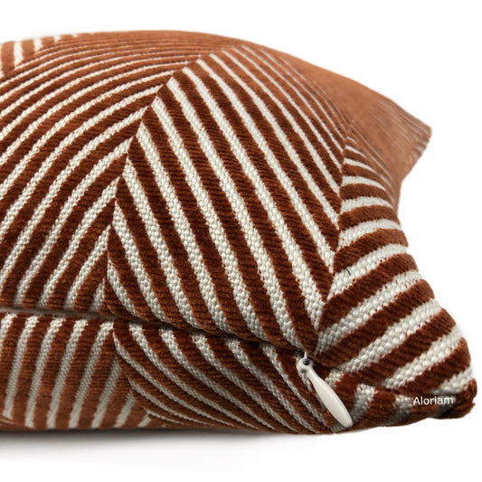 Spencer Rust White Herringbone Chenille Pillow Cover