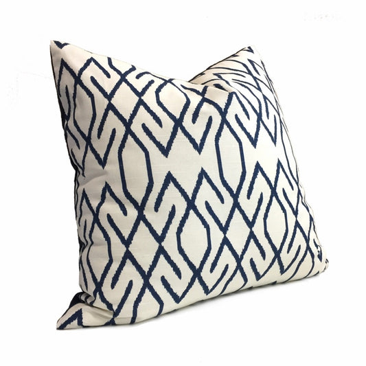 Zoe Ikat Lattice Navy Blue Off-White Geometric Pillow Cover (Made from Lacefield Designs fabric)