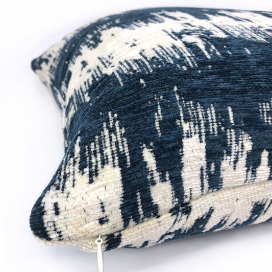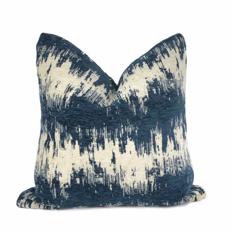 Ziggy Navy Blue Cream Jagged Stripes Chenille Pillow Cover