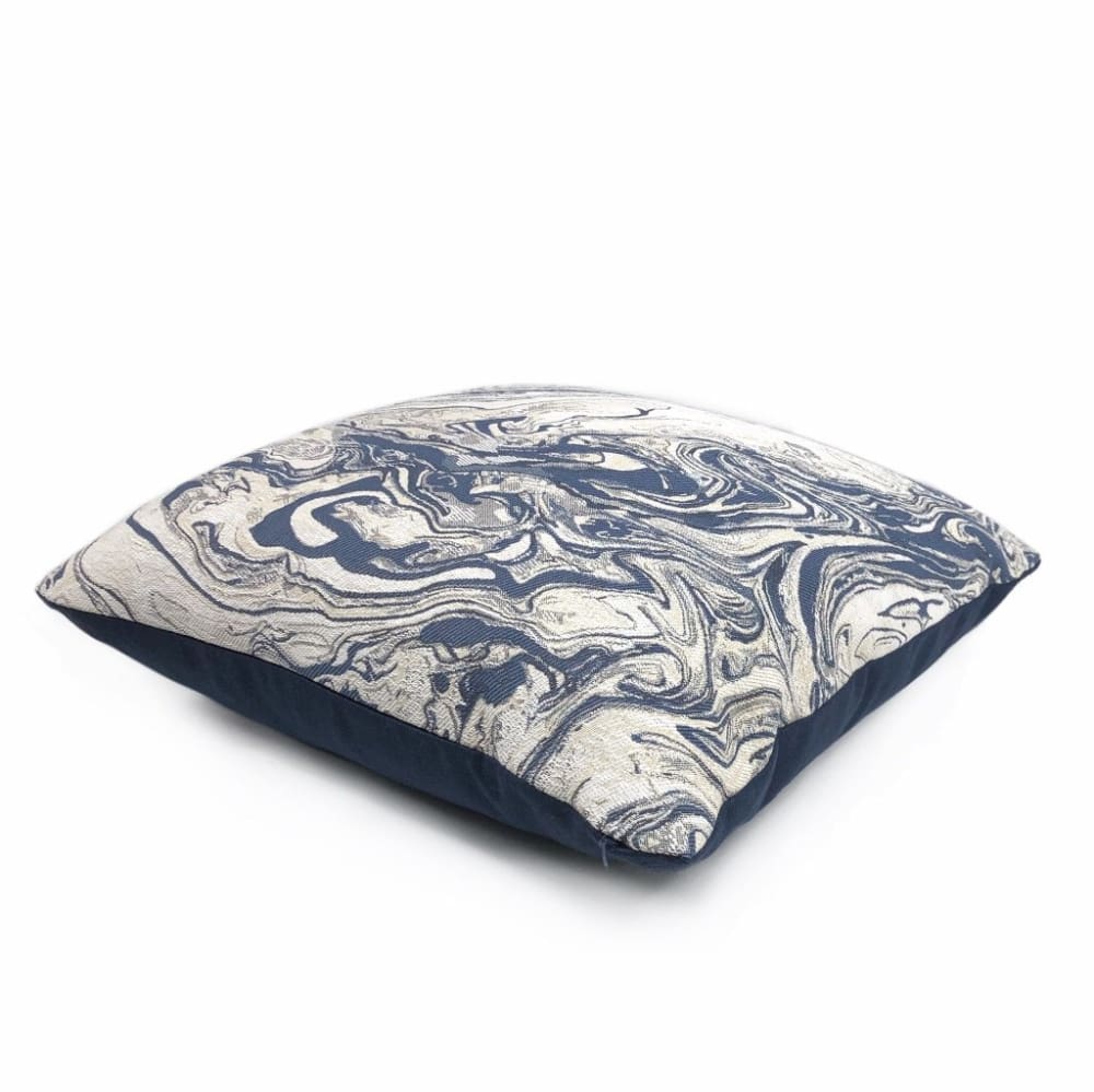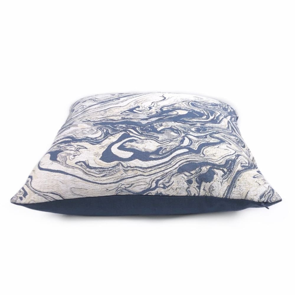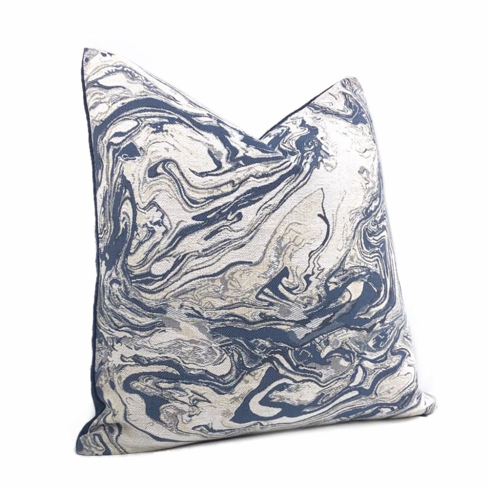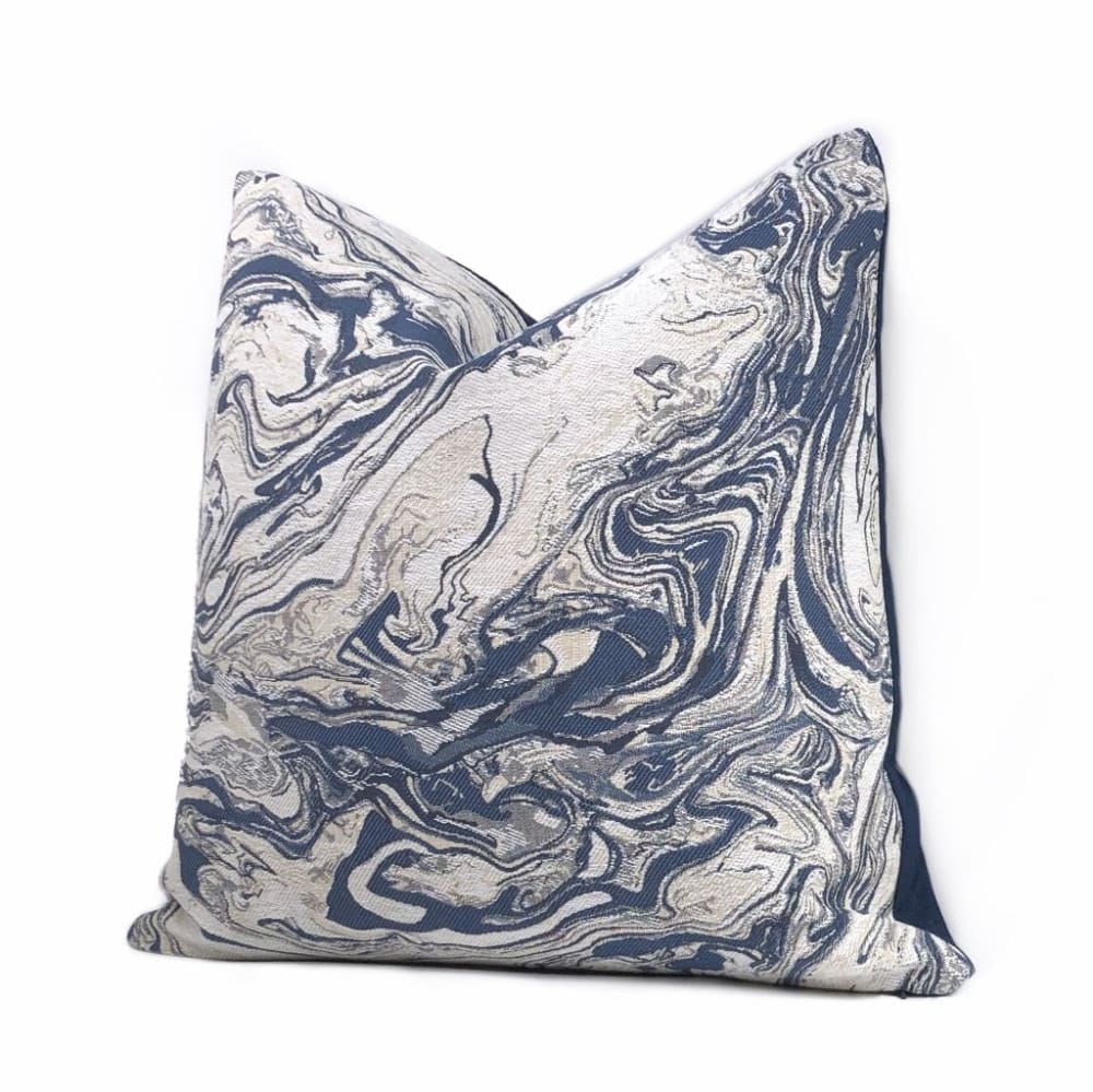 The Zephyr pillow cover takes inspiration from our beautiful planet Earth. Atmosphere like swirls woven in blue and off-white create drama and visual interest.