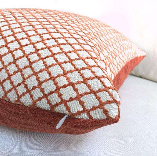 (CLEARANCE) Designer Orange Cream Geometric Small Diamond Lattice Fretwork Pillow Cover