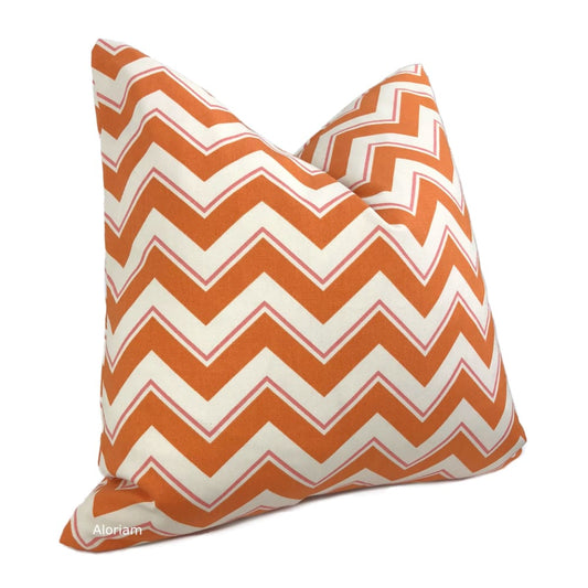 (CLEARANCE) Duralee Chevrama Grapefruit Orange Pink Cream Chevron Pillow Cover (Fabric by the Yard available)