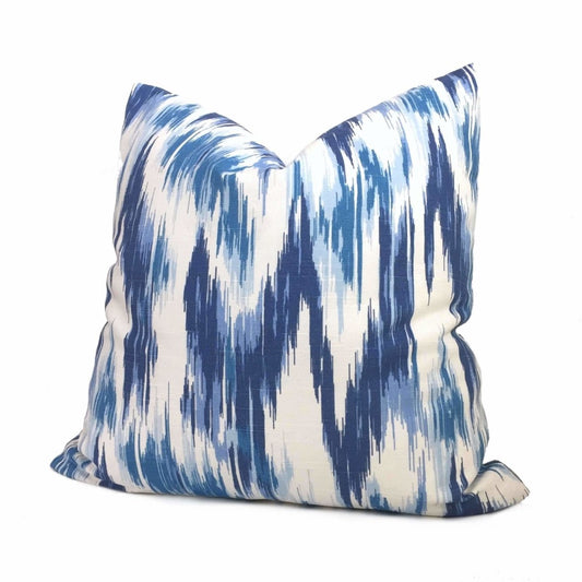 (CLEARANCE) Designer Blue White Abstract Ikat Cotton Print Pillow Cover