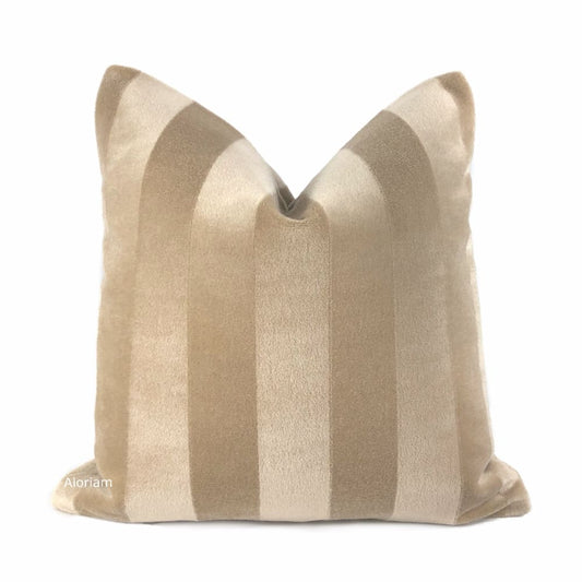 Mayfair Sand Beige Mohair Velvet Stripe Pillow Cover (Kravet Couture fabric)