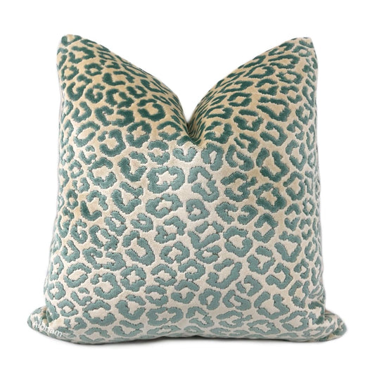 Panthere Aqua Green Ivory Leopard Spot Italian Cut Velvet Pillow Cover (Brunschwig & Fils fabric)