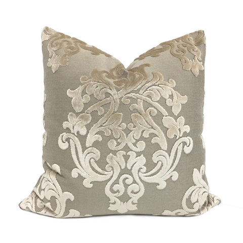 (CLEARANCE) Robert Allen Royal Beauty Damask Medallion Beige Cream Cut Velvet Pillow Cover