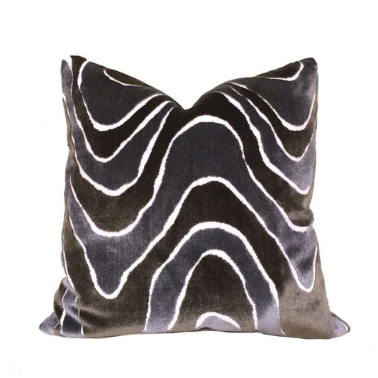 Robert Allen Lush Wave Mica Gray Brown Italian Cut Velvet Pillow Cover