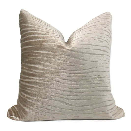 Solomon Beige Ecru Tiger Stripe Chenille Pillow Cover