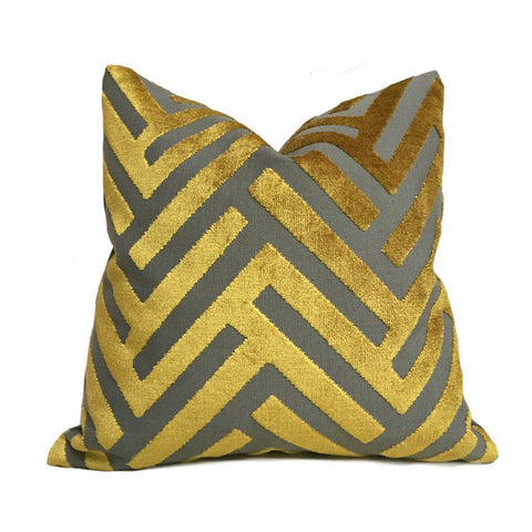 (CLEARANCE) Quattro Amber Gold Geometric Square Lattice Cut Velvet Pillow Cover