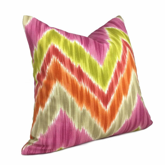 Bright Multicolor Ikat Chevron Cotton Print Pillow Cover