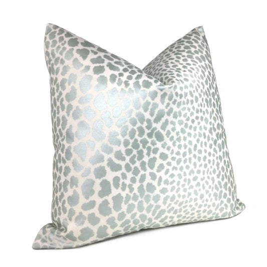 Metallic Aqua Blue-Green Leopard Spots Cotton Print Pillow Cover