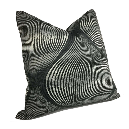 Modern Ogee Swirl Black Silver Gray Pillow Cover