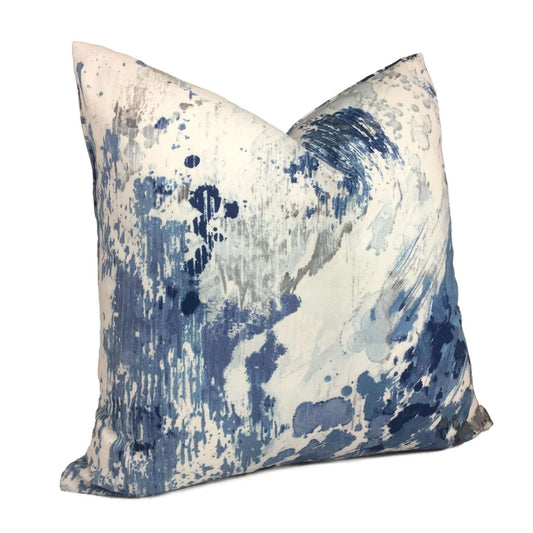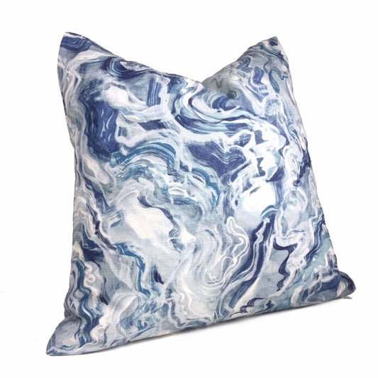 Orinoco Blue Gray White Modern Art Cotton Print Pillow Cover