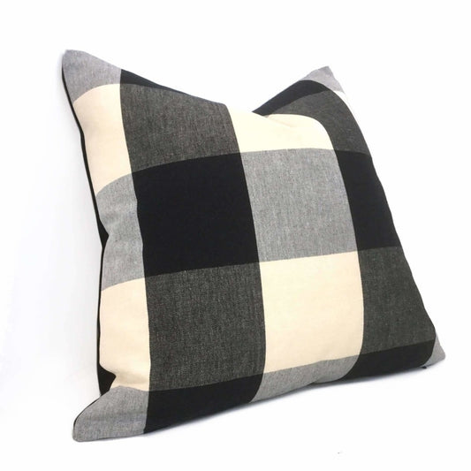 Black Gray Cream Buffalo Plaid Large Checks Pillow Cover