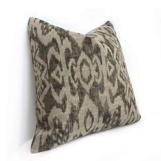 Designer Ethnic Ikat Tribal Gray Tan Upholstery Pillow Cover