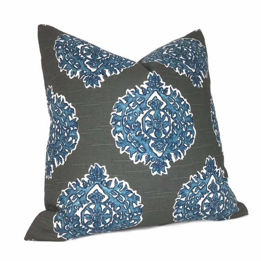 Madras Blue Gray Ethnic Motif Pillow Cover (Made from Lacefield Designs fabric)