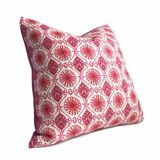 Designer Boho Chic Pink Cream Starburst Geometric Pillow Cover