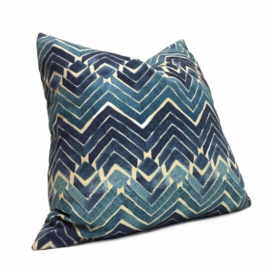 Batik Blue Teal Tribal Ikat Chevron Print Pillow Cover
