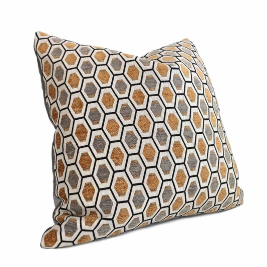 Honeycomb Geometric Gray Off-white Orange-Gold Chenille Velvet Pillow Cover