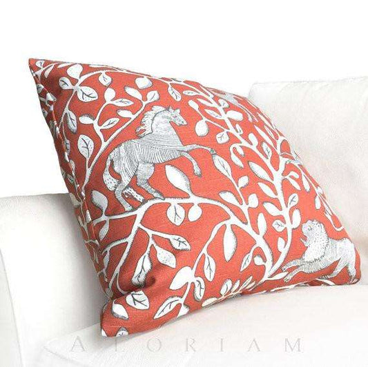 Dwell Studio Pantheon Folk Art Animals Forest Persimmon Orange Ivory Pillow Cover