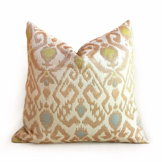 Designer Beige Brown Green Blue Ikat Ethnic Pillow Cover