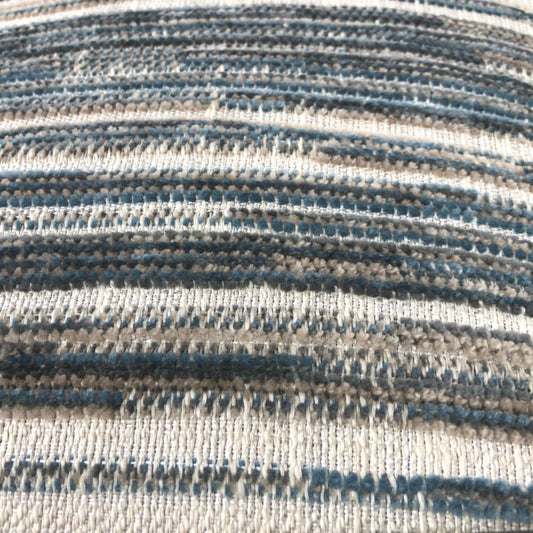 Dustin Brown Beige Teal Blue Textured Stripes Chenille Pillow Cover