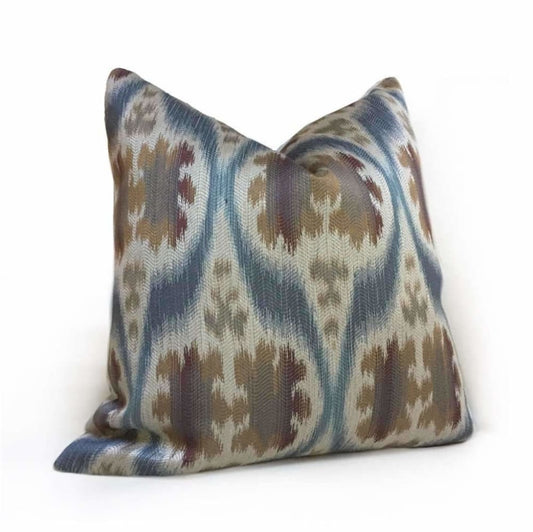 Dinesh Ikat Ethnic Motif Slate Blue Tan Beige Brown Pillow Cover (Kravet 32548.516 fabric)