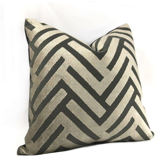 Euclid Taupe Gray Geometric Chevron Zig Zag Cut Velvet Texture Pillow Cover
