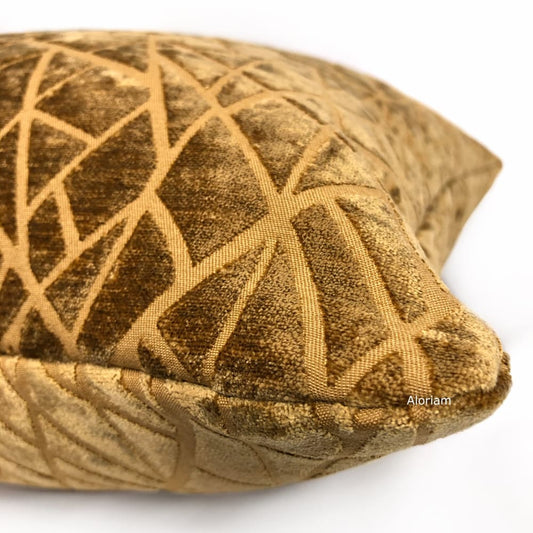 Fractal Golden Amber Modern Geometric Chenille Pillow Cover