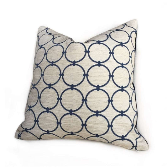 Kravet Geometric Interlinked Circles Blue Ivory Cream Pillow Cover