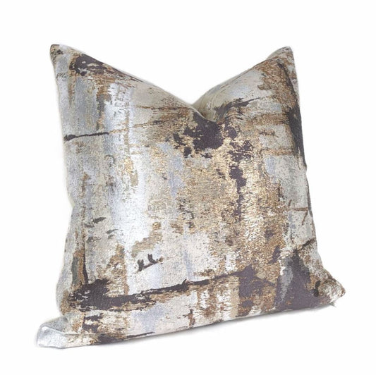 Lumina Metallic Brown Gold Cream Quartz Texture Pillow Cover