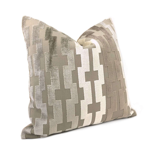 Maze Gesso White Beige Abstract Pillow Cover (Made from Lacefield Designs fabric)