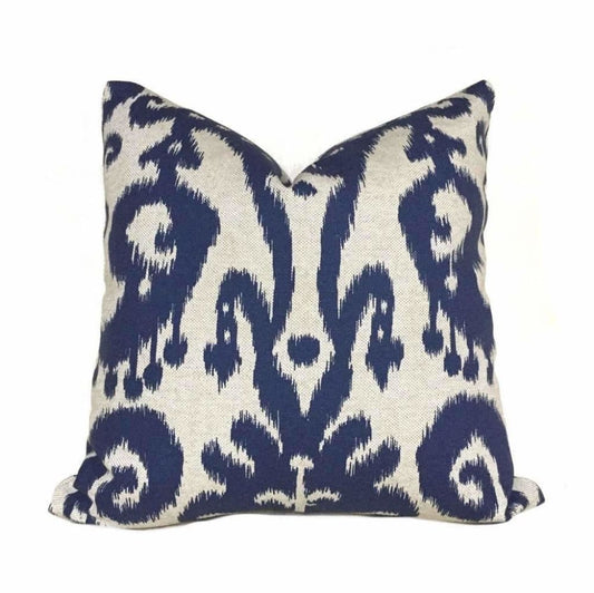 Marrakesh Ikat Ethnic Pattern Blue Beige Pillow Cover (Made from Lacefield Designs fabric)