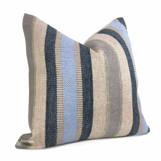 Ogilvie Blue Beige Textured Stripe Pillow Cover