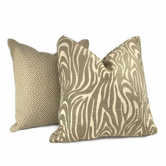 Saber Brown Beige Animal Stripe Chenille Pillow Cover