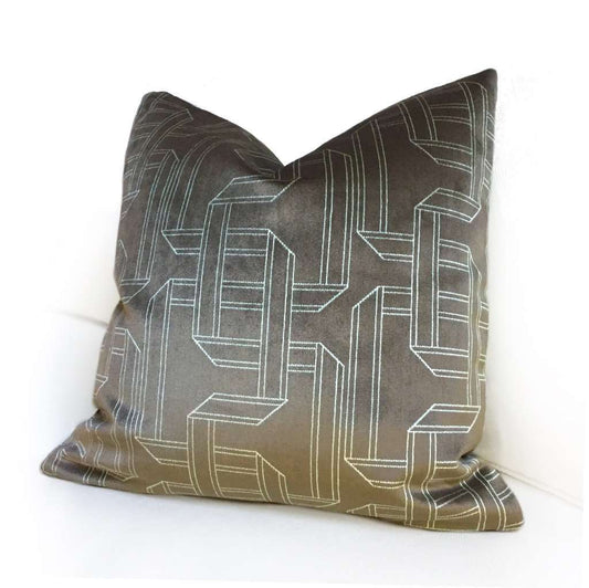 Robert Allen Velvet Maze Shale Brown Larry Laslo Velvet Pillow Cover